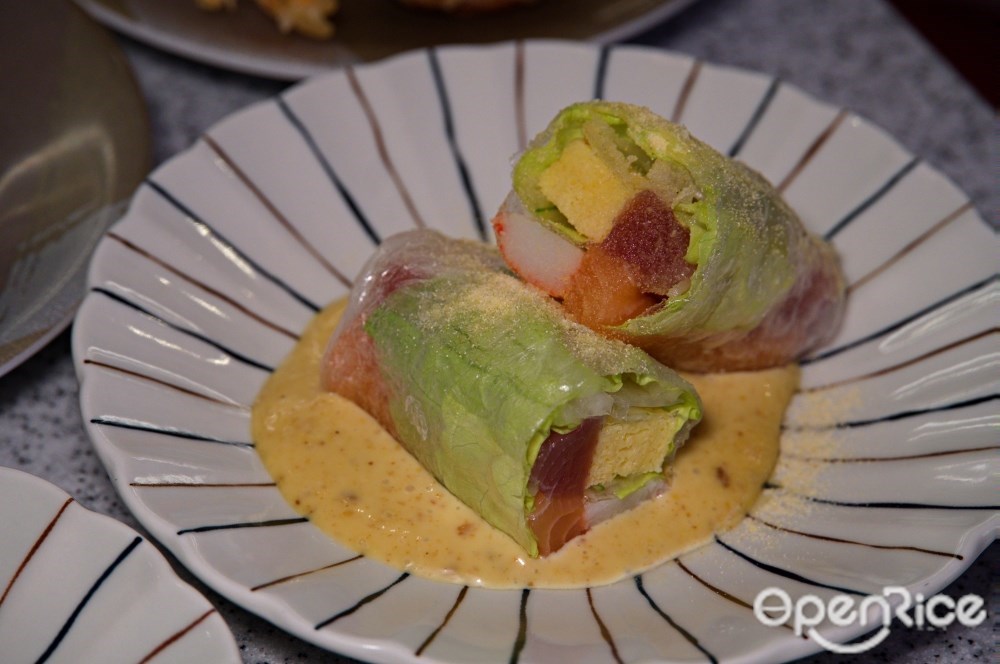 不能錯過的還有「嘎嘣脆辣肉球」炸肉球麵衣超酥脆,撒上糖粉中和底部辣醬,入口甜辣過癮。明星商品茶碗蒸再創新口味;「蒜蓉鮑魚茶碗蒸」以鮮甜高湯、鮑魚與滑嫩的雞蛋,彷彿一碗豐盛的海鮮湯品;「鮭魚塔酪梨」新鮮酪梨與番茄香菜製成的酪梨醬,配上新鮮的鮭魚生魚片與底部的酥脆米餅,出乎意料的清爽口感;「芥末胡麻海鮮卷」米卷包裹豐富的生菜與海鮮食材, 淋上黃芥末調製的胡麻醬,清爽開胃!