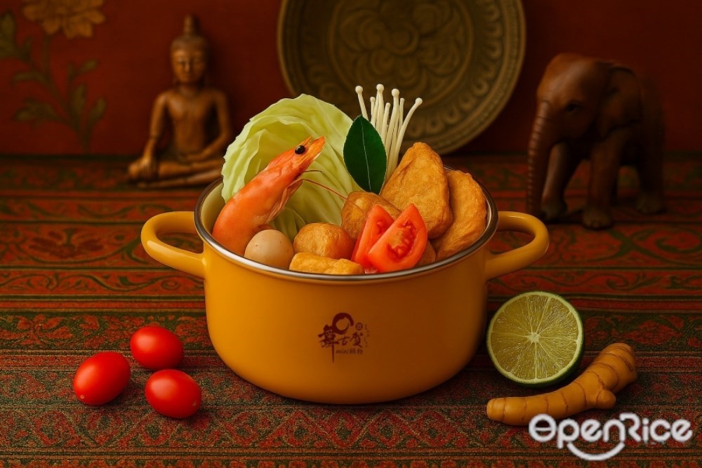 據點遍佈台北、台中、高雄的「舞古賀mini鍋物」,以十款精心調製的湯頭、新鮮豐富的食材,成為饕客心目中吃小火鍋的首選。其中「泰式冬蔭鍋」選用特級蝦醬、香茅、檸檬葉、南薑及蘿望子等十餘種食材,以大火炒製、小火慢熬成湯底,橘紅色的湯頭酸甜又鮮美,吃上一口有如置身泰國街頭。鍋裡還有固定的肉類、青菜、火鍋料等等,份量十足非常有飽足感。