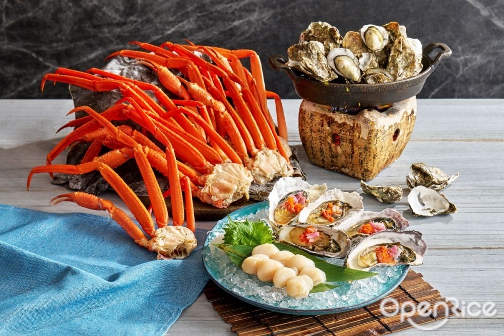 敘日餐廳本季仍延續備受好評的海鮮加碼,不分平假日都能暢吃北海道生食級干貝、蒸烤牡蠣,假日再加碼享受醋蔥漬生蠔與鮮甜松葉蟹腳吃到飽。