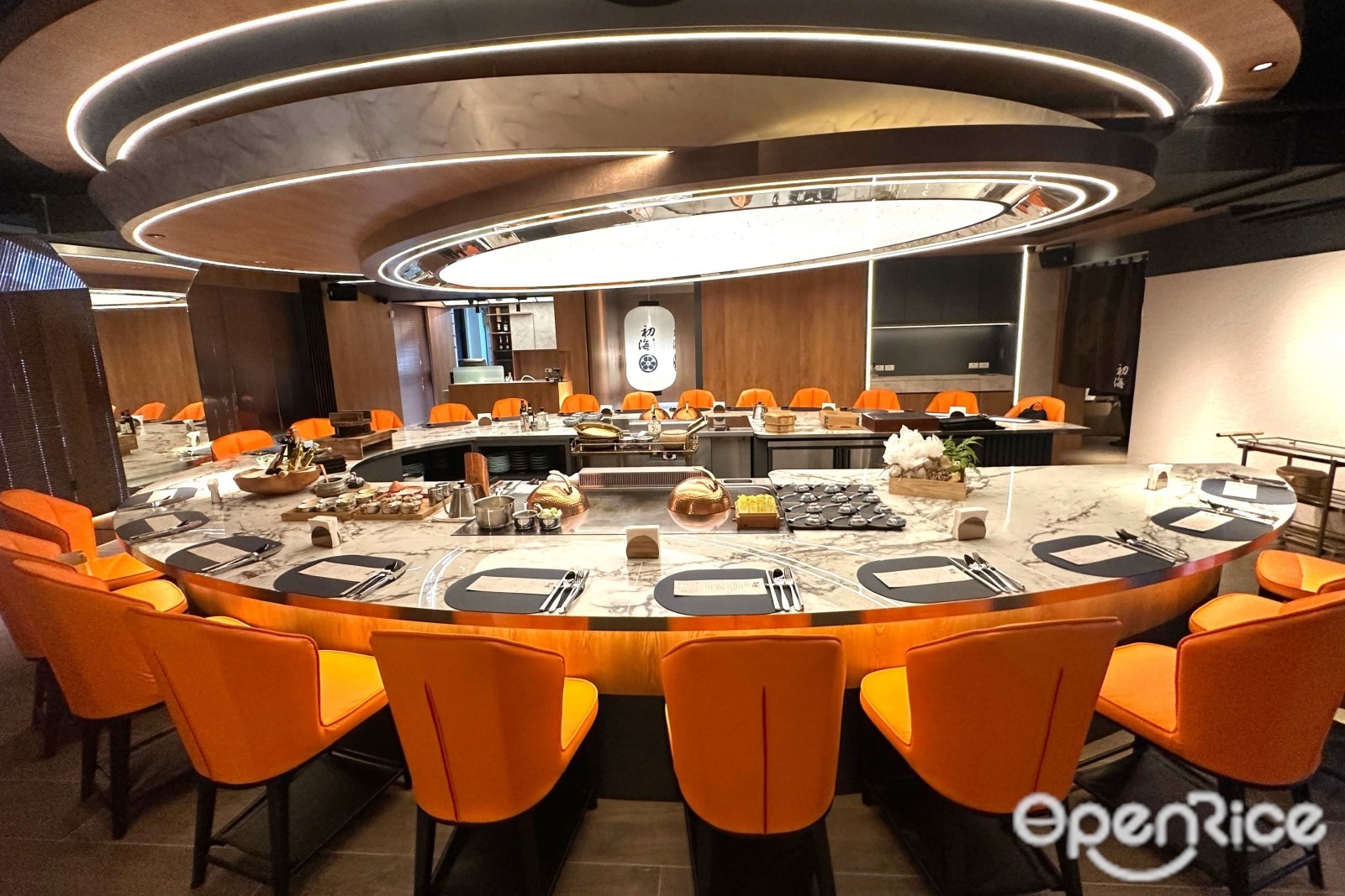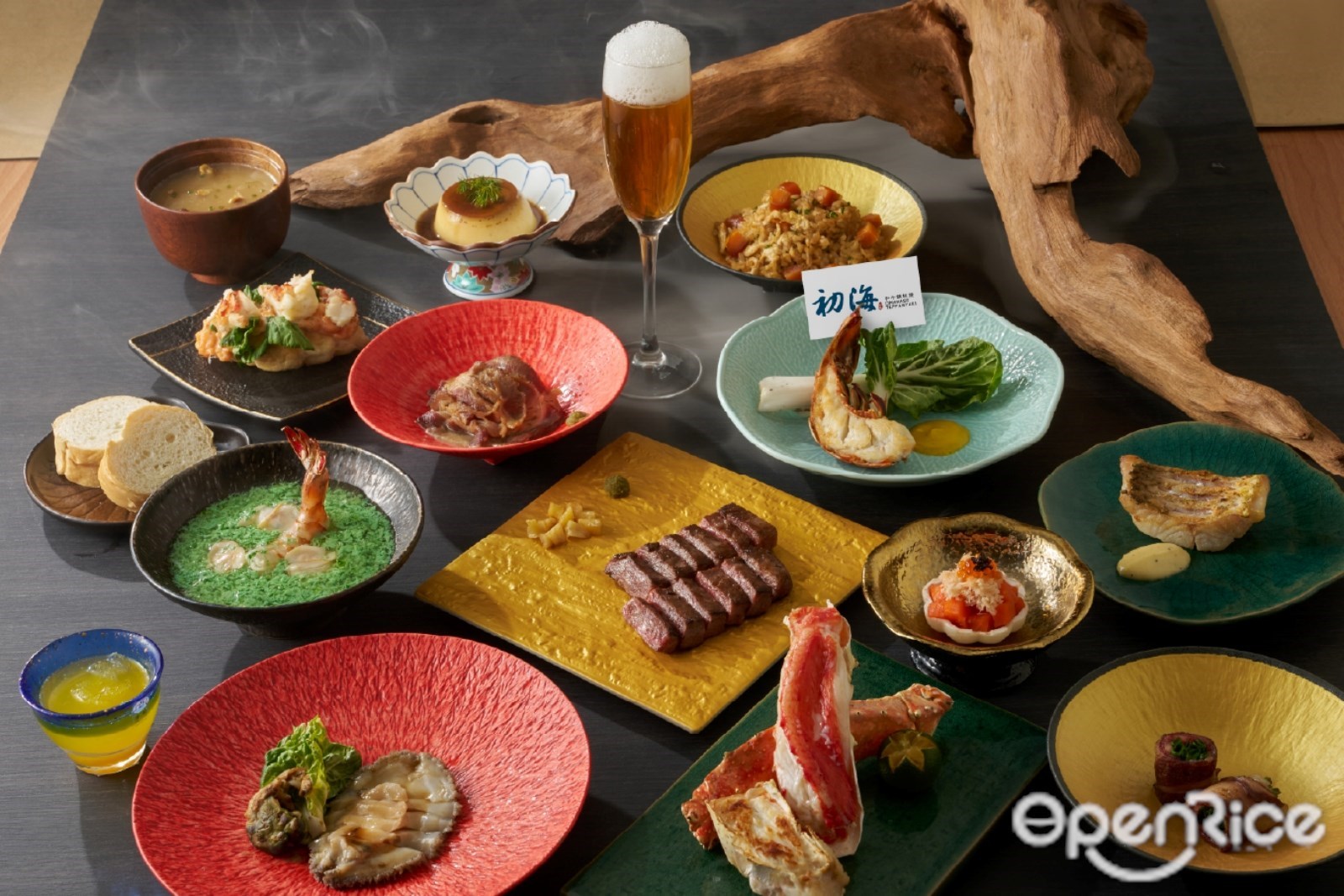 初海和牛鐵板燒承襲馬辣集團超高CP值品牌精神,以最高CP值無菜單和牛鐵板燒的特色讓饕客一試成主顧。初海和牛鐵板燒歷經12個月台灣、日本、香港實地考察籌畫,採每季套餐精選最對時節的食材不定時更換菜色,首季以西班牙鵝肝醬、現刨法國松露、德國魚子醬、北海道生食級干貝、野生大龍蝦、南非活鮑魚、北海道鱈場蟹、日本A5和牛等頂級食材打造到到精采餐點。其中最受人矚目的是「龍蝦三吃」囊括「龍蝦可頌佐明太子醬」、「日本琴酒焰燒野生大龍蝦」、「龍蝦蝦膏味增湯」;與「日本A5和牛二吃」,一次可以吃到「日本極上A5和牛壽喜燒」、「麥卡倫焰燒日本極上A5和牛牛排」,搭配精彩鐵板火焰秀,讓顧客近距離享受視覺、嗅覺、味覺的精采饗宴。