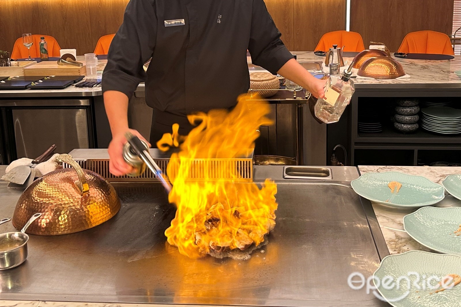 初海和牛鐵板燒也在餐期間打造火焰秀