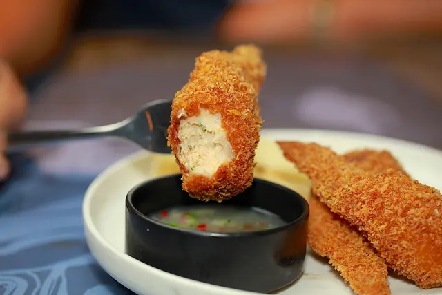 搭配著傳統的香草魚露醬,酸甜滋味口感層次提升真好吃。