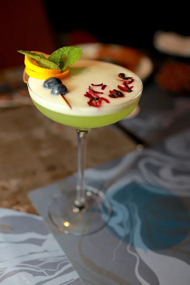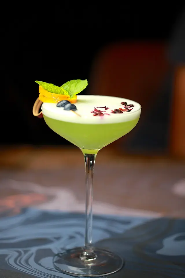 這杯調酒充滿哈密瓜與青蘋果香氣,使用琴酒酸甜口感滑順超級好喝(理性飲酒,喝酒不開車,未滿十八歲請勿飲酒)。