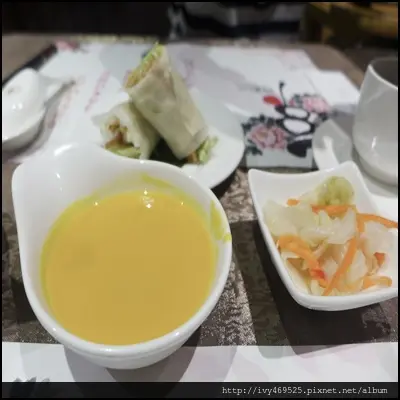 單人套餐的濃湯、泡菜,濃湯喝起來好濃、好順口,還有一隻小蝦,泡菜相當清爽開胃。
