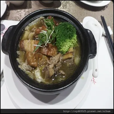 我的主菜~成都燒鴨,這道要好好推薦一下,整道佳餚味道恰到好處,燒鴨香氣四溢,口感豐富,吃完燒鴨,湯汁才是精華所在,喝起來ㄧ級棒!不愧用數十種中藥下去熬煮,讓燒鴨吃起來很多汁,腥味完全沒有,而且不會乾癟癟的,燒鴨的油脂和湯汁巧妙的融合在一起,佐有花椰菜,讓整個菜餚更顯爽口而無油膩感,讓我相當精豔。