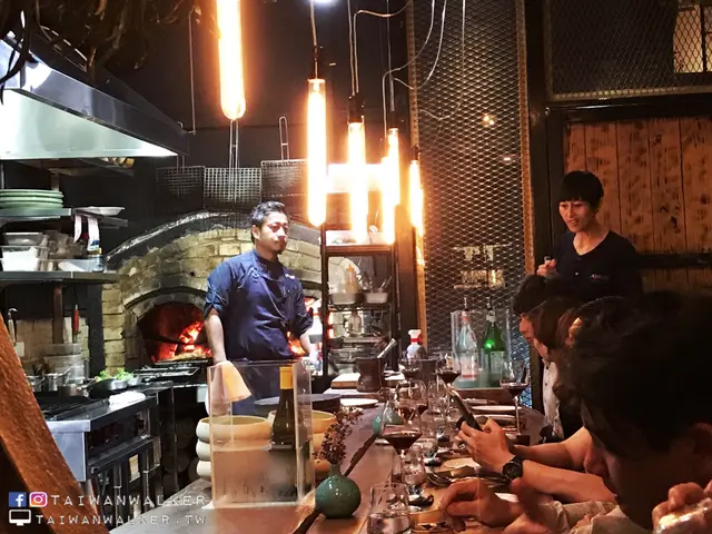 店內座位只約有16-18個,有兩個用餐時段 18:00 / 21:00,六點的常爆滿,我們訂了九點的。7-8個位子面對廚房,6個位子是面壁的,我們是坐了另一邊的沙發椅區。廚房區域有一個大窯爐,燒烤的部分就靠他了。