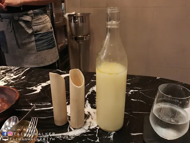 朋友想喝啤酒,店員建議試他們的小米酒,台東的酒農自己釀造的,不是常常有。台灣最原始的酒釀,純正的小米酒酸度不算高,酒精也不高,配烤肉非常搭。餐廳的礦泉水跟氣泡水不另收費。
