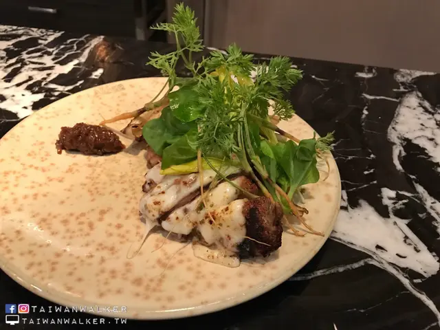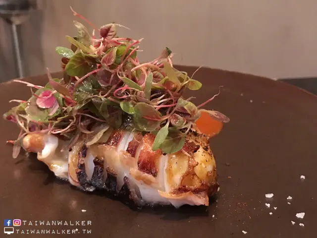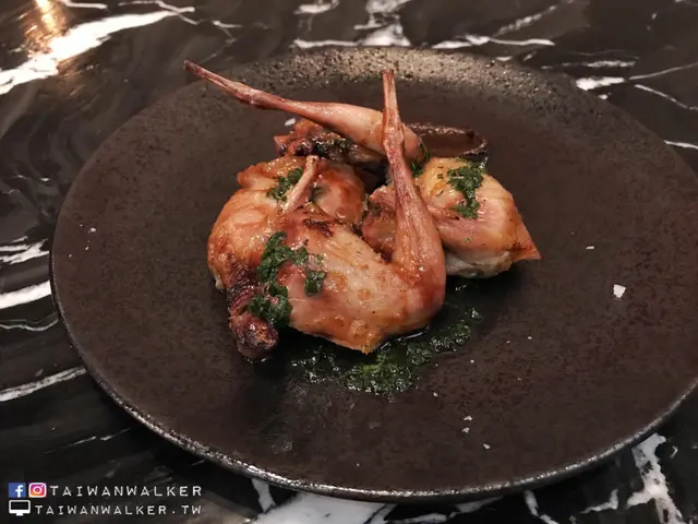 相當欣賞這道烤鵪鶉,肉嫩多汁,外層烤得香酥可口,肉香柴香撲鼻,佐上面芳香的刺蔥醬還有黑蒜泥,建議用手直接拿著吃,一口烤鵪鶉,一口小米酒,暢快的用餐感覺。