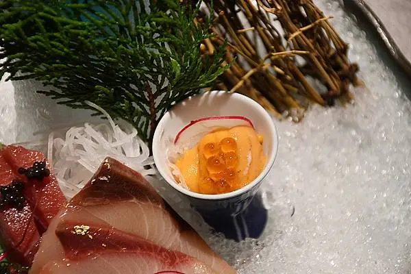 而我最喜歡的莫過於是海膽魚子醬,柔順綿滑的口感順著舌尖到喉韻中都陣陣的鮮味,好滿足
