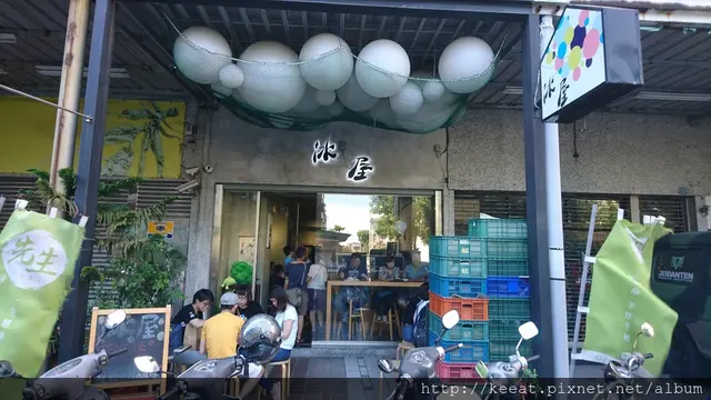 冰屋在高雄紅線獅甲站附近,只是獅甲站附近不是很熱鬧,附近有一個很大的勞工公園跟游泳池,然後在冰屋的對面有一個兒童遊戲場,還好這邊離三多商圈、台鋁、Costco、Ikea、夢時代都不算遠。其實冰屋在一排的房子中間,不算是很起眼,比較特別一點的是屋頂下面的白色氣球,很樸素的牆面上寫著冰屋兩個字。