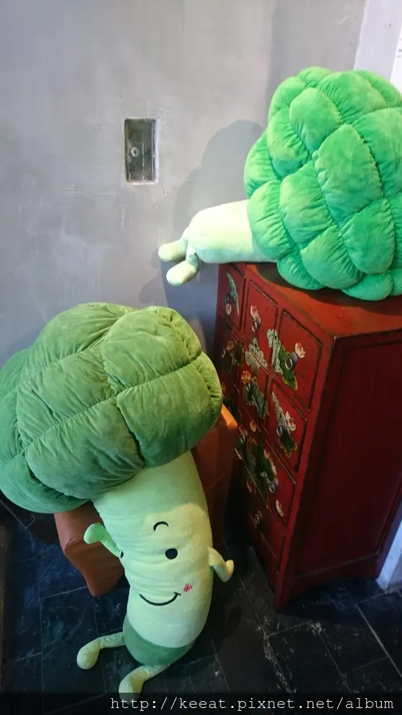 推開門有兩隻很可愛的玩偶,看起來好像是花椰菜吧~