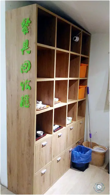 當然,吃完以後也希望顧客把餐具放到餐具回收櫃上面來。