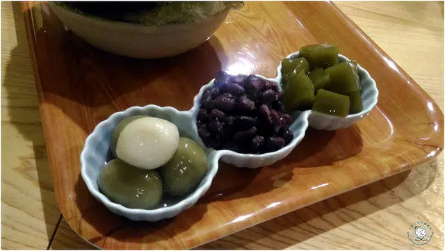 附贈的抹茶凍、紅豆、抹茶湯圓