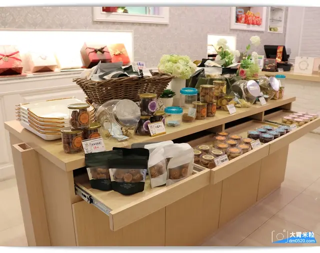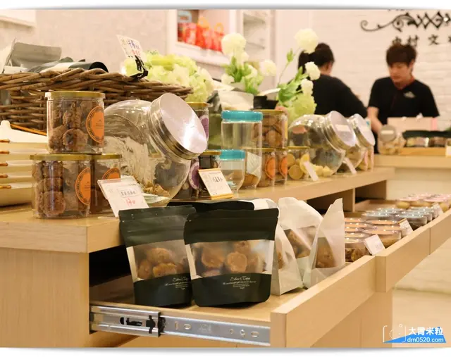 這次來到新店面發現整個走西式典雅氛圍,陳架列擺上各種手工餅乾,