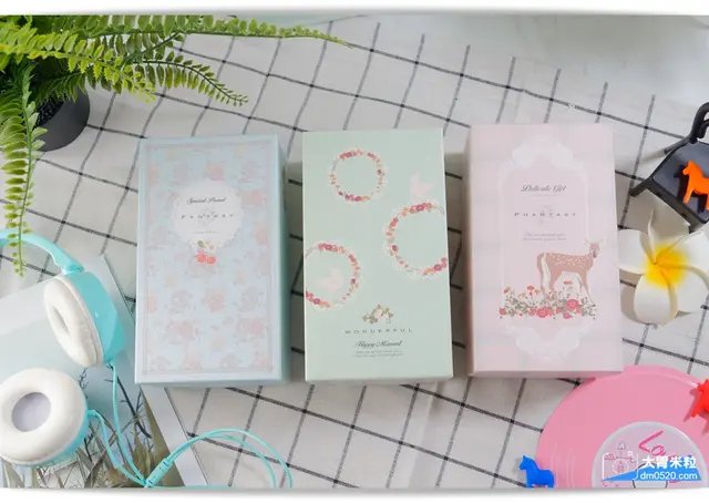 一共有三款硬盒搭配,粉色外盒搭配小碎花設計,優雅的法式浪漫好典雅!