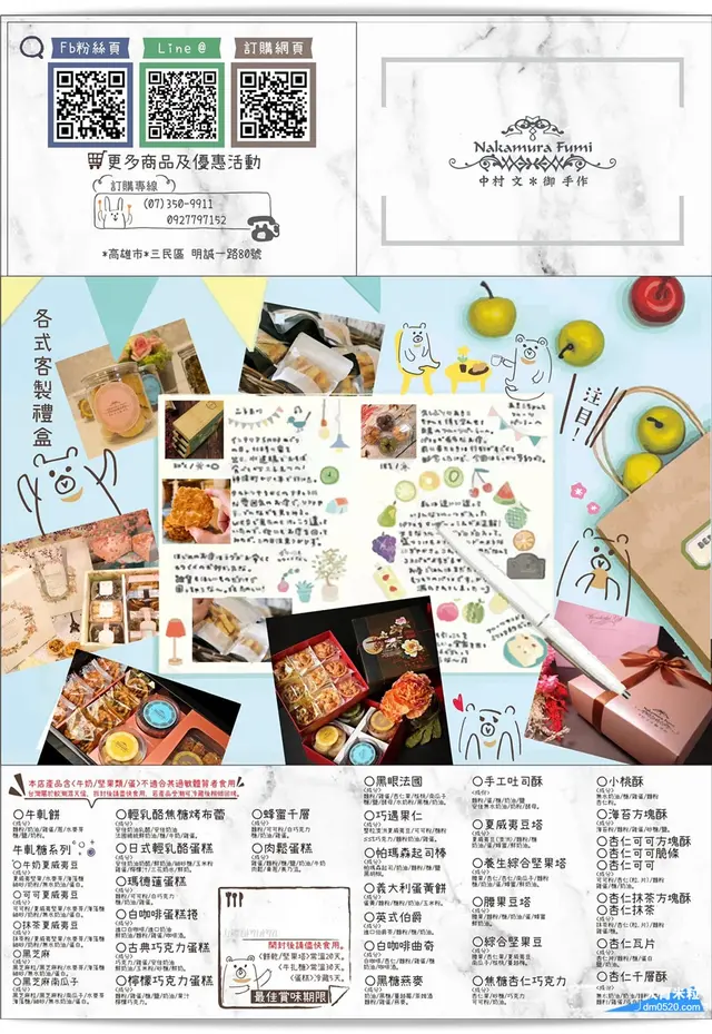 高雄喜餅禮盒推薦2019,中村文御手作,開業至今十年,店內招牌手工餅乾多樣選擇,可隨意搭配不同預算的禮盒,一直深受歡迎!記得米粒之前去過大昌路舊店,當時除了餅乾還有引爆人氣的咖哩麵包,後續因租約關係改搬到高雄明誠一路,帥氣的老板陸續研發各種西式餅乾甜點,過年節慶伴手禮或結婚喜餅都讓客人相當滿意,這次米粒收到好友的結婚喜餅禮盒,看到我們想念許久的中村文,立刻拍照開箱想跟大家分享!新人們若是正在找尋好吃又體面的手工餅乾禮盒,相當推薦!高雄喜餅西式禮盒推薦,高雄手工餅乾禮盒推薦,中村文喜餅禮盒推薦,