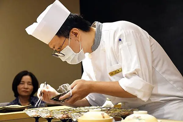 板前割烹區共有九席,非常喜歡在這一區看著料理長五味澤和實以熟練地又細緻的手法製作出一份份的餐點