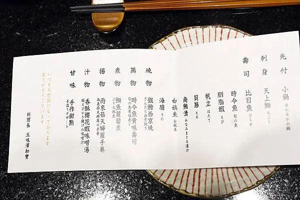 許多時候品嚐無菜單割烹料理總是讓我感覺到拘謹,不過五味澤料理長所營造出來的用餐氛圍卻是舒服且沉浸其中