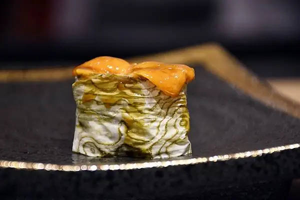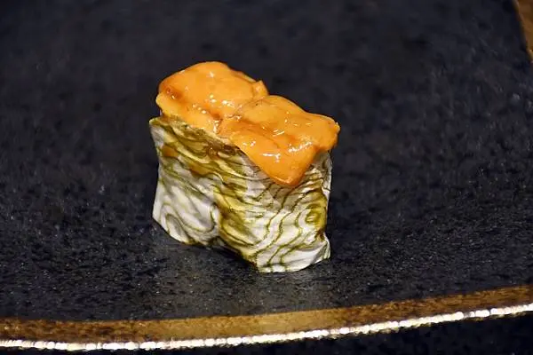 太邪惡了!滿滿的海膽、以磯雪昆布包覆醋飯,一口吃下去滿是濃郁又鮮美的鮮味