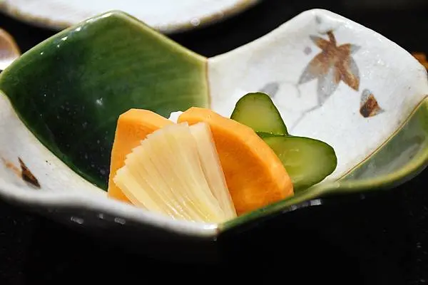 以米糠去醃漬紅蘿蔔、大根再搭配清爽的薑片,將口中的各式滋味洗淨之後,再開啟鮮美之路