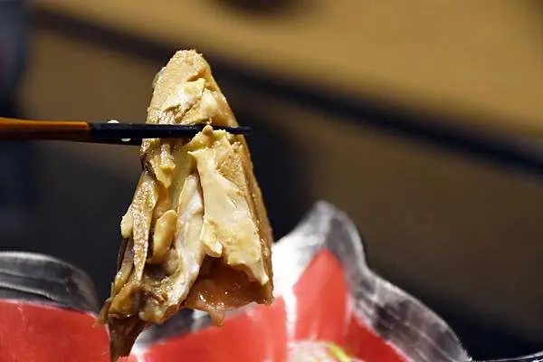 藉由從魚骨上夾下的鰤魚肉,每一口都油脂豐富而且有一種入口即化的口感