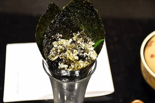 以這樣包覆鮪魚不僅在咀嚼時口感更加扎實細緻綿密,同時點上的松露美乃滋風味更佳,很涮嘴