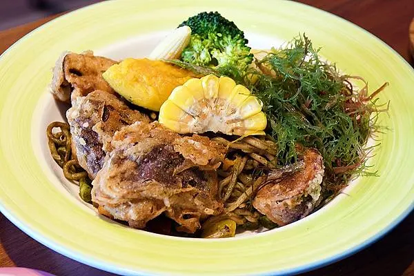 野菇使用酥炸吃起來依然保有水分以及彈牙口感