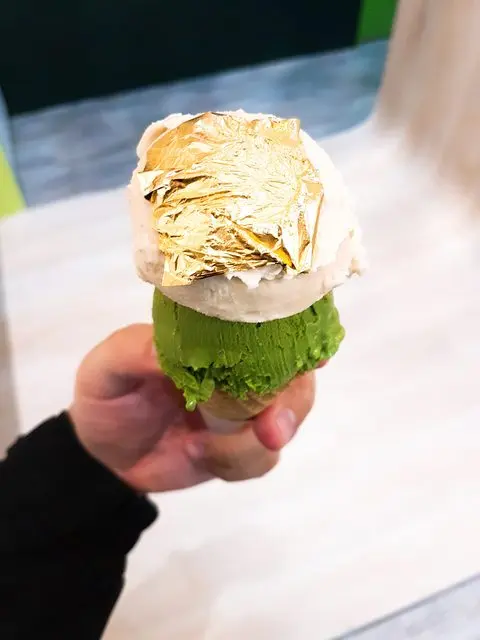 ▲手作甜筒+濃抹+香草+4X4cm金箔 $150