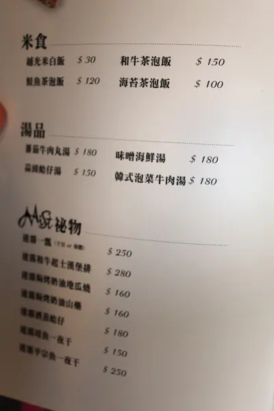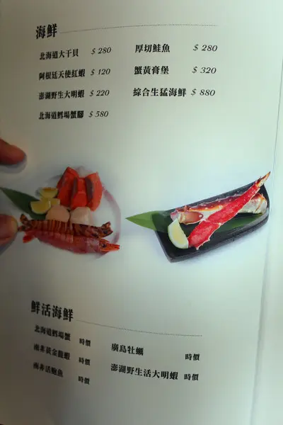 店內用餐環境很寬敞 座位也很多 黑色簡單華麗的裝潢 很酷的是在店裡還有像海產店有的大水族箱 裡面裝的海鮮就是可以讓客人現點現殺的 個人覺得只要是很高級的餐廳一定會有一區是飯後甜點用餐的地方 很聰明的做法可以增加翻桌率 當然也很貼心的設置戶外吸菸區 給癮君子們飯後一根菸的用餐環境 廁所也是很高級貼心 該有的準備都有 滿特別的是有漱口水 以及我在日本很常看到的馬桶 菜單