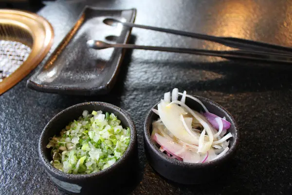 可以無限使用的小菜 果醋洋蔥跟蔥花 (大推洋蔥超好吃 酸酸甜甜的很開胃) 兩者搭被燒肉一起吃超搭的阿