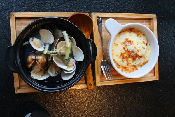 這兩道的表現就稍微普通 可能是我比較喜歡酒味比較重的蛤仔 但可以吃的到很甜很甜的蛤仔 他們很貼心的會幫你裝成兩小碗 服務好的沒話說
