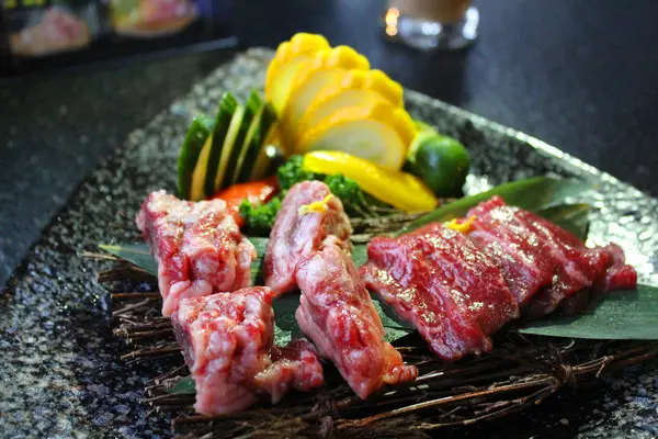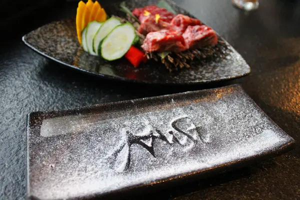 這次享用的牛肉都是澳洲9A的和牛 9A等級的和牛可以算是前五名的頂級和牛 鮮切牛肉 是師傅直接把牛肉搬出來現切給你看並且撒上玫瑰鹽調味
