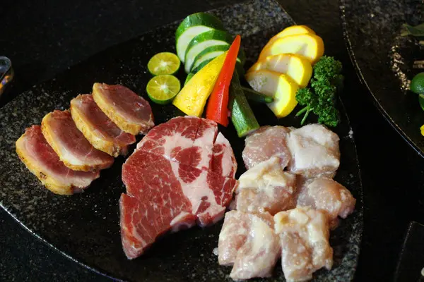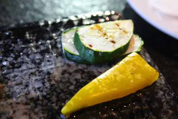 她們除了準備很好吃的肉之外 另有許多蔬菜會烤給你吃 像是不同總類的節瓜 甜椒 秋葵 真的很棒呦