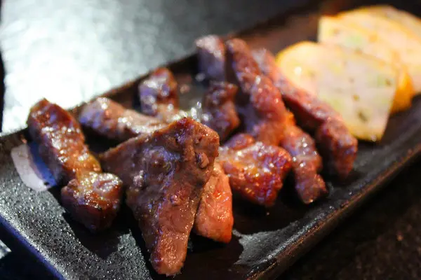 這一大塊牛排 大概是我吃過目前最好吃的燒肉了 他們的烹飪方式不像是燒肉 比較像鐵板那種很俐落的煎烤 這粉嫩粉嫩的牛肉 一口咬下 超級Juice好吃