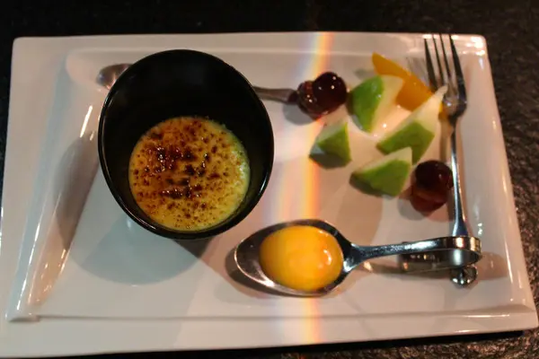 焦糖布丁 這個做為最後ENDING完美!!!!! 是我很喜歡的脆脆焦糖片布丁 吃完真的很幸福 然後還有飯後水果 真的超級滿意的一餐
