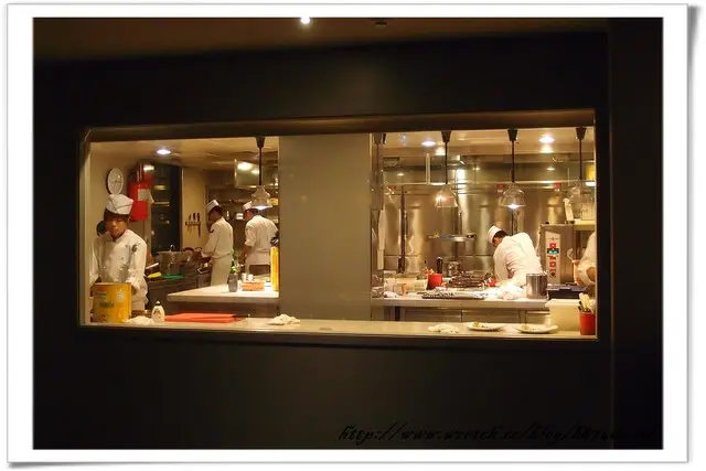 旁邊還有個開放式廚房 看著廚師在玻璃窗內忙碌準備餐點