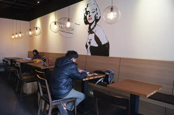 店內整面牆被美麗的瑪麗蓮夢露給佔據了。