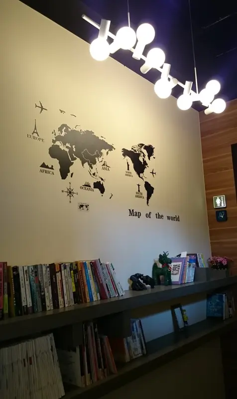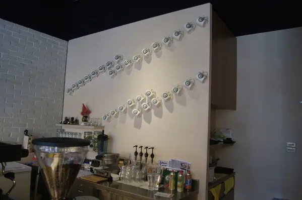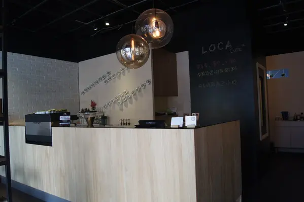 半開放櫃台,後面牆上裝飾了LocA露卡專屬馬克杯。