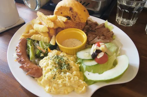 (小茴香松阪豬、沙拉、溫式沙拉、德式香腸、薯條、番茄貝果、炒蛋、濃湯、附餐飲料)
