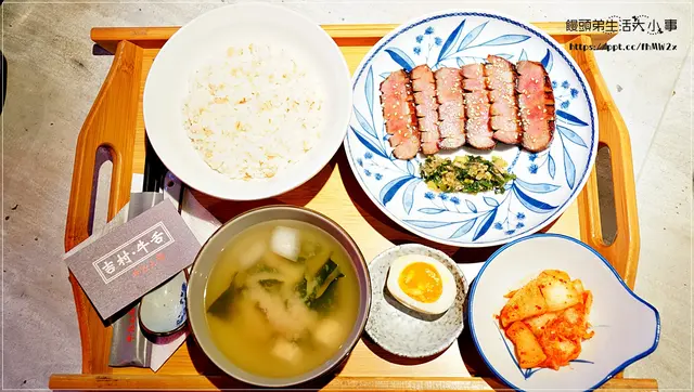 吉村牛舌 Yoshimura位於板橋巷弄中,是以炭烤牛舌為主打的餐廳。於2018年七月甫開業,文青素淨的裝潢,提供澳洲穀飼牛舌,有牛舌前段的薄切、後段的厚切,另有無骨牛小排及厚切松阪豬定食的選項。這天試了限定牛三拼定食,一口氣嚐了牛小排、薄切牛舌及厚切牛舌,加了特製鹽蔥更顯牛舌美味!吉村牛舌 Yoshimura位於板橋的巷弄中,由捷運板橋站走過來約8分鐘。這附近還有知名的好初早餐、點點甜甜。吉村·牛舌 Yoshimura以極為素淨的模樣位於巷子的轉巷邊間,與鄰近市場相比,外貌頗為醒目。走進吉村·牛舌 Yoshimura的店內,迎面而來的是以霓虹燈拼出自家店名日文的發音。以透明窗戶引進大量的自然光線,冷色調的牆面,與木製裝潢帶出一些文青氣息。但艾方妮覺得也有點韓式烤肉店的簡約風格。在座位旁大部份配置了插座,很符合現代人離不開3C產品的需求。餐廳內也設置了自助飲水區,在炎熱的夏天的確很需要啊!在櫃檯後方,廚房一側的區域也規劃了許多座位。吉村牛舌提供的餐點很簡單,就是以牛舌為主,搭以牛小排、松阪豬等,有定食(含湯品、泡菜、麥飯、特製鹽蔥或炸蒜片),也可以單點。另外也有飲品及很適合牛舌的酒類飲品。限定牛三拼定食 $480定食皆附了一碗麥飯,就是在飯中加入了大麥一起煮,飯裡頭見到一條條顏色較深的,就是大麥本人喔!據知大麥含有豐富的β-葡聚醣可溶性纖維,有助於降低膽固醇、維持血糖穩定、促進腸道蠕動等優點。麥飯吃來很Q,蠻好吃的,平常不太吃白飯的艾方妮,把這碗飯全部吃完。定食中的泡菜,令人在用餐的時候搭配店內的裝潢,覺得很像在韓式餐館裡吃飯。一般在餐廳常吃到的都是大白菜製成的韓式泡菜,比較少有白蘿蔔的。吉村的白蘿蔔雖然只有兩塊,但脆度及酸甜度都很討喜。第一次拜訪吉村牛舌, 很想多試點不一樣的,所以這個三拼是最好的選擇了!一次滿足三種招牌餐點。限定牛三拼中,有厚切牛舌2片,薄切牛舌4片及牛小排4片。一般牛舌就只有附店家特製的鹽蔥,因為有牛小排所以又多附了炸蒜片,這細節看得出店家的用心。艾方妮總是習慣最愛吃的放在最後,所以先吃去骨牛小排吧XDD牛小排略帶油脂,咬來軟嫩中略帶嚼勁,搭上炸蒜片,相當對味!吉村採用的是澳洲穀飼牛舌,一條牛舌厚切只能切5-7片,而薄切只能切7-10片。薄切是採前端(舌尖)的部份,入口是帶點脆口度並帶些嚼勁。令人喜愛的是吉村的料理方式,以炭烤的方式,塗以特製醬汁,那個醬汁的香氣十足,入口濃郁芳香,鹹香中帶著討喜的甜,蠻不錯的!厚切則是採後端(舌根)的部份,口感鮮嫩又Q彈,加上特調的醬汁,幾乎每咬一口,都能感受到牛舌的飽口感。哎呀!這樣兩片不夠啦!下次要直接挑戰4片8切才行了!牛舌的最佳搭檔鹽蔥,整個搭起來後,更是別具風味,太搭了!如果再搭啤酒,就是人生一大樂事了!吉村牛舌以特別專賣店的模式經營,是蠻特別的!本來都在燒烤店或居酒屋才吃得到的炭烤牛舌,以便利的定食方式,就算只有一個人或是在下午時段也能輕鬆享受美味的烤牛舌。…查看更多