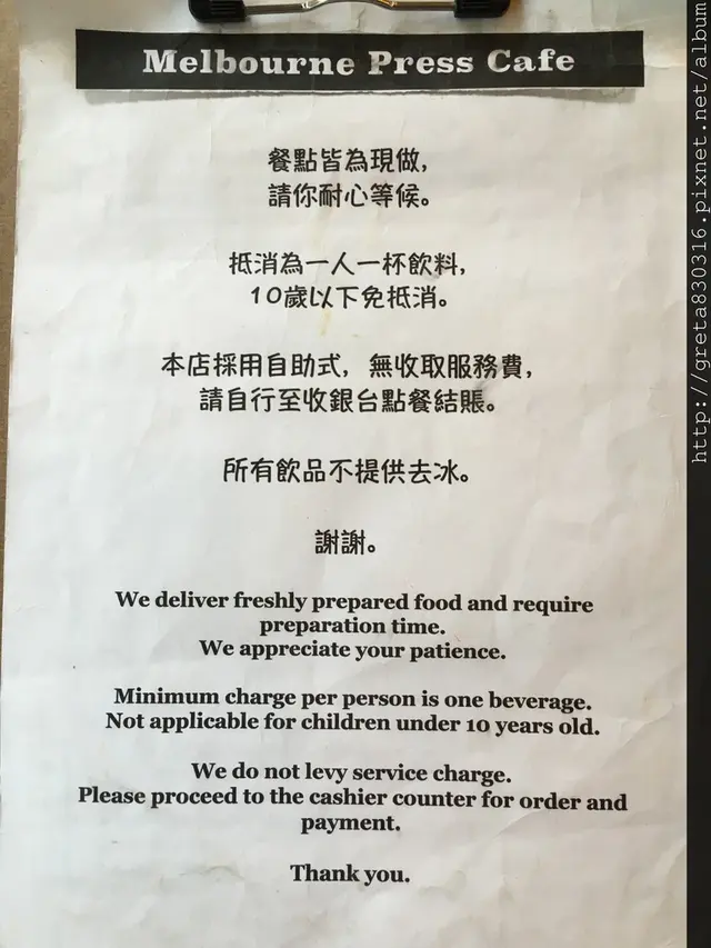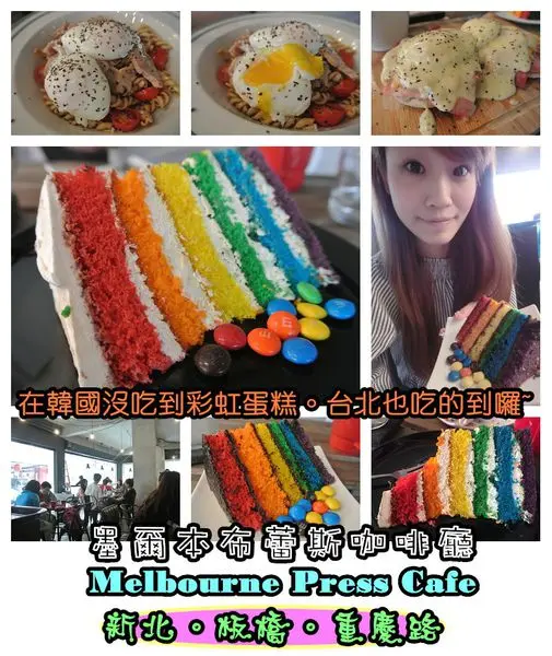 跟姐妹超臨時的約在板橋,滑手機找美食看到墨爾本布蕾斯咖啡廳二話不說馬上訂位XD位於捷運府中站1號出口附近的墨爾本布蕾斯咖啡廳,交通算是十分便利~不過因為今天軟西跟姐妹吃飯約的很臨時,沒帶到相機T^T下班直接衝過去的嗚嗚所以這整篇文章都是手機拍照修圖的喔!!!清晰度當然大不如相機,但因為蛋糕太可愛了還是想介紹一下哈哈哈來看看店內環境吧~大片落地窗讓整個採光超好,坐窗邊的位子可以眺望路上熙熙攘攘人、車、景物好愜意另外墨爾本布蕾斯咖啡廳是不限制用餐時間的!提供免費WIFI,部分座位有插頭~整間店以工業風為主,金屬感覺跟少女蛋糕有種強烈的互補感阿XD另外因為墨爾本布蕾斯是不收服務費的,所以點餐結帳要到櫃台~不定期推出不同的加購優惠~都可以在櫃台看到大大的黑板上方也有菜單~店內角落放著水、杯子、紙巾等等的自助區來看看墨爾本布蕾斯的菜單吧~因為都是現點現做要耐心等候喔~每人低消是一杯飲料,軟西今天點的是彩虹薄荷雪碧(NT100)、姐妹的是焦糖寶貝奇諾(NT120)(冰)彩虹薄荷一上桌軟西完全被這漂亮的藍色吸引啦XD讓我想到前陣子吃的維摩法式甜點一口喝下會被冰心沁涼的薄荷弄得十分清醒XD哈哈哈姐妹的寶貝奇諾喝起來很滑順,像小朋友喝的牛奶那般溫順帶點甜膩感今天的主餐酪梨奶油起司烤吐司(NT130)熱壓吐司裡面夾著滿滿的酪梨,當初跟姊妹看到酪梨腦波很弱的就點下去了XD酪梨清爽滑嫩,和酥脆熱壓吐司滿搭的義大利麵部分是做冷食,吃起來滿清淡帶點微酸,不太習慣吃這樣的冷盤所以覺得普普哈哈不過覺得這樣一份130有點吃不飽哈哈哈,畢竟軟西是大食怪,這份量可能比較適合小鳥胃的來了墨爾本布蕾斯,一定要點招牌的彩虹蛋糕(NT120)阿!總共有三種,苦甜巧克力、鮮奶油、焦糖奶油每日隨機限量推出不同口味~軟西跟姊妹光看到這七彩的蛋糕就少女心大爆發啦XD上拍下拍左拍右拍,手機裡一片七彩心情特好阿~跟姊妹邊吃邊猜各個顏色是什麼口味,吃得出草莓、百香果、藍莓、葡萄,其他的是看了官網才知道XD從紅到紫依序是草苺、柳橙、百香果、青蘋果、藍莓、葡萄口味旁邊灑上七彩小糖球,讓整個蛋糕更加五彩繽紛了~雖然是色素蛋糕但是真的超殺記憶體的阿XD跟姊妹拍了一輪還不肯罷休哈哈彩虹蛋糕吃起來滿不甜很清淡,配上微苦巧克力中和淡淡果香香氣~不過吃起來比較像是很鬆的海綿蛋糕,吃久了有一點點乾,邊吃邊配飲料比較合適~墨爾本布蕾斯咖啡廳彩虹蛋糕超吸睛!店內不限制用餐時間,還有提供WIFI、每日限量甜點等等環境氣氛舒適,滿適合姊妹們來喝喝下午茶拍照聊天XD可惜這次都是用手機拍攝修圖,下次有機會再帶相機來玩~-----店家資訊-----墨爾本布蕾斯咖啡廳 Melbourne Press Cafe墨爾本布蕾斯菜單:墨爾本布蕾斯菜單墨爾本布蕾斯地址:新北市板橋區重慶路67號墨爾本布蕾斯交通:捷運板南線(BL號線、藍色線)府中站1號出口步行7分鐘墨爾本布蕾斯電話:02-29595936墨爾本布蕾斯營業時間:一到五10:00-22:00,六日08:00-22:00墨爾本布蕾斯臉書粉絲團:墨爾本布蕾斯FB備註:不限時、有WIFI、免費插頭、可訂位、可宅配、寵物友善餐廳、毛小孩友善餐廳、免服務費、低消一杯飲品…查看更多