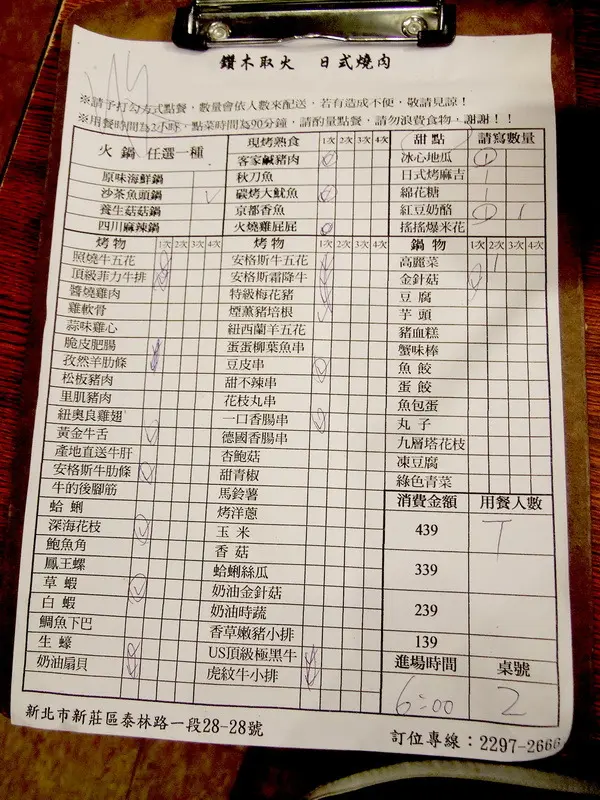鑽木取火日式燒肉 (新北/基隆) 網址: https://s.openrice.com/cHbSmG2zn80W0 地址: 新北/基隆新莊區泰林路一段28號 電話: +886 0222972666