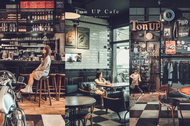 TON UP 名稱源自於1960年代英國倫敦對於時速100英里 (160公里) 的俚語,1960年代,倫敦街頭咖啡林立,機車騎士聽著搖滾樂,穿梭於咖啡小餐館之間,形成獨特的Cafe Racer文化,餐廳延續了這樣的精神,打造出一個充滿特色文化的美食用餐空間。(節錄自Ton Up Cafe 粉絲團)