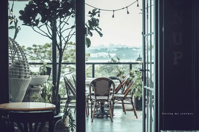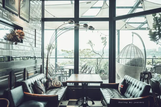 落地窗外的風景不斷地吸引我的們的視線,彷彿框住了一幅風景照,英倫風搭配八里的景色實在太美了,頓時讓人以為在歐洲度假,最喜歡的,莫過於二樓靠窗的沙發區座位。