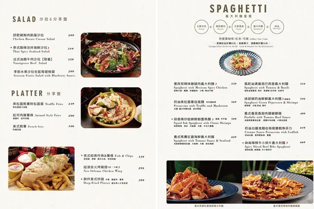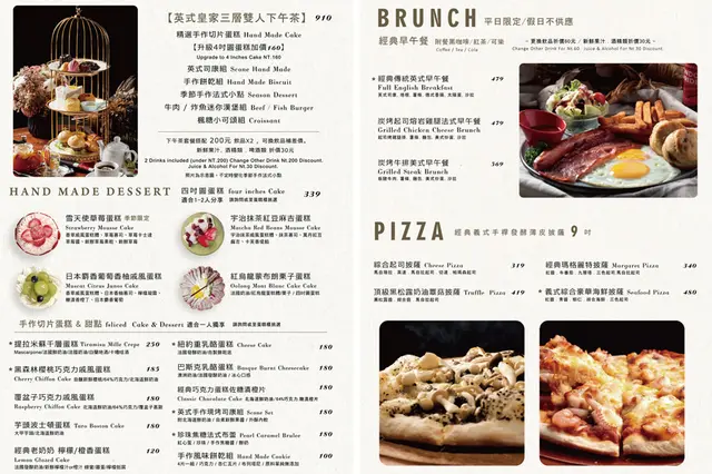 Ton Up Cafe 每人低消需單點一個品項,平日 140元/人、假日正餐時段 350元/人、其他時段 250元/人(需加收一成服務費),假日或國定假日會有現場的駐唱表演,餐點有提供沙拉分享盤、經典早午餐、義式手桿發酵薄皮披薩、義大利麵套餐、義式燉飯套餐、英式皇家三層雙人下午茶、手作切片蛋糕甜點、各式飲品等等