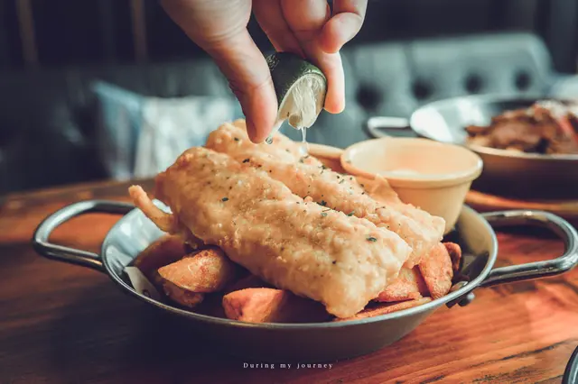 沒人不知道英國的傳統美食是炸魚薯條,為了符合英國傳統的特色,特別使用了厚切薯條,馬鈴薯味會更加濃郁,吃起來也很酥脆爽口,炸魚則使用白魚製成,外層的麵糊經過炸製後,形成了一層金黃色的酥脆外皮,一口咬下能品嘗到柔軟鮮嫩的魚肉,搭配店家自製的酸甜塔塔醬很爽口,是非常經典的英國美食。