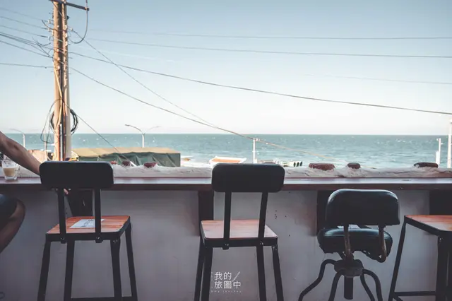 咖啡廳主要是戶外座位區,這裡有看海的絕佳位置,吧台的座位更是一位難求,只有到傍晚的時候才能順利拍到空景,可惜電線杆會擋住一部分的視線,卻不減大家看海的慾望,或許我們只想找回被疫情偷走的夏天。