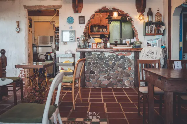 金山跳石沒有名字的咖啡店提供咖啡、茶飲、鬆餅、現烤披薩、甜點、輕食,不只可以喝下午茶,也可以吃正餐,每人最低消費為一杯飲品,限時90分鐘。