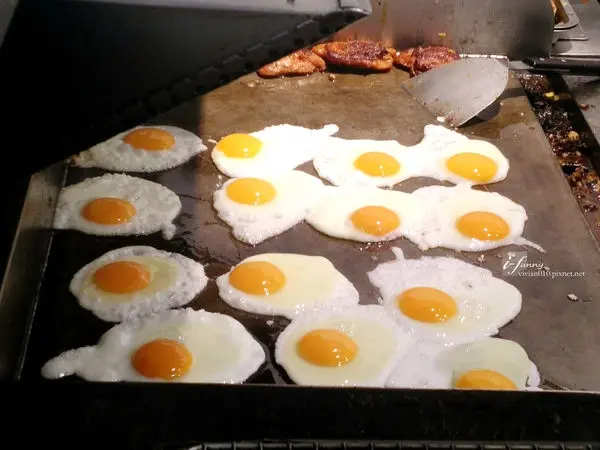 雞蛋一次煎這麼多個,卻都能保持半熟狀態,這就考驗功力了!