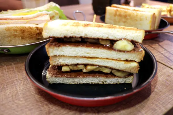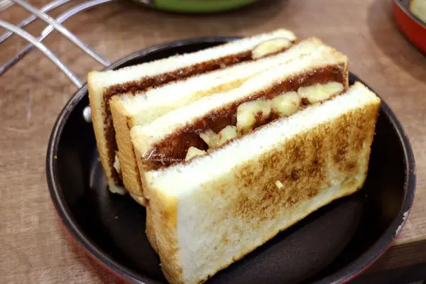 新鮮切片的香蕉夾入塗滿Nutella巧克力醬的吐司中,